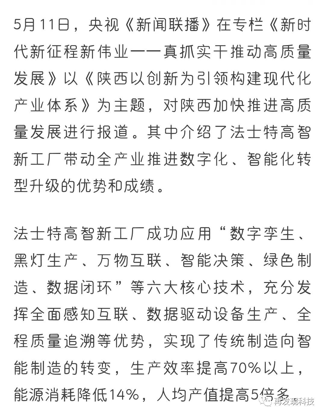再發現(北京)科技有限公司MES團隊再創佳績,助力陜西法士特汽車傳動集團打造的數字化智能標桿工廠在西安高新區順利建成投產,投產后自動化率達到100%,生產效率提高≥70%,能源消耗降低≥14%。數字化智能工廠徹底改變了傳統工業模式,真正意義上實現無人化黑燈生產,成為法士特發展史上的重要里程碑,也彰顯了再發現(北京)科技有限公司MES團隊的專業能力。目前,法士特智能工廠作為陜西省“燈塔工廠”的最佳名片,迎來全國大量企業的參觀和學習,也接連亮相央媒。